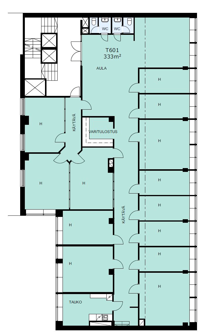Kuudennen kerroksen toimistotila heti vapaana. Tilan koko on 333 m2 ja se koostuu erillisistä huoneista.