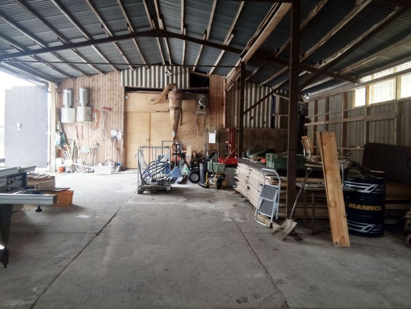 Lisäksi tontilla on hallirakennus sekä erillinen toimistorakennus. Noin 350–400 m²:n hallirakennuksesta suunnilleen puolet on lämmintä, puolet kylmää tilaa.