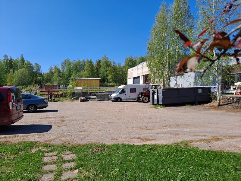 Noin 9’600 m²:n tontti on osittain asfaltoitu ja aidattu. Isossa pihassa on runsaasti pysäköintitilaa. Kiinteistöllä on naapurin kanssa yhteinen jätevedenpuhdistuslaitos ja porakaivo.