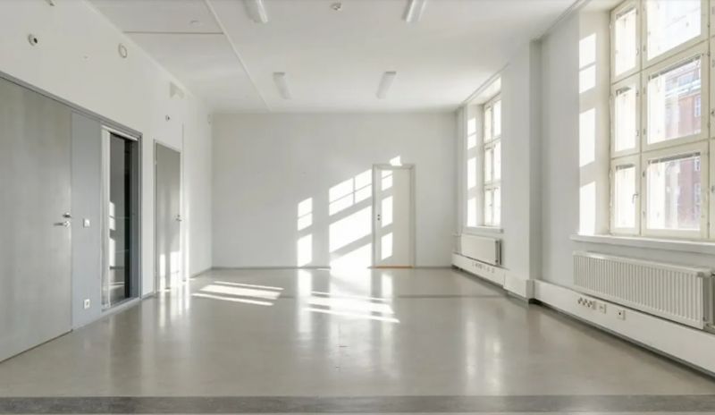 Vuokrattavana tyylikästä, valoisaa toimistotilaa korkeilla ikkunoilla.