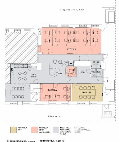 Vuokrattavana tyylikästä, valoisaa toimistotilaa korkeilla ikkunoilla. Kohteeseen on sisäänkäynti sekä Hämeentien puolelta että hienolta sisäpihalta. Tila on yhdistettävissä myös 450 m2 kokonaisuudeksi.