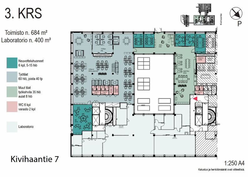 Vuokrattavana laadukasta, modernia tuotanto-/toimistotilaa, josta toimistotilaa on n.684 m² ja laboratoriotilaa on n. 400 m².
