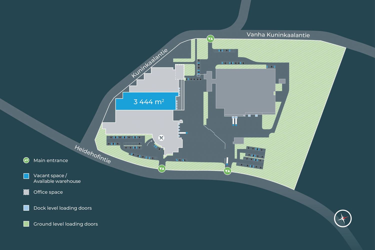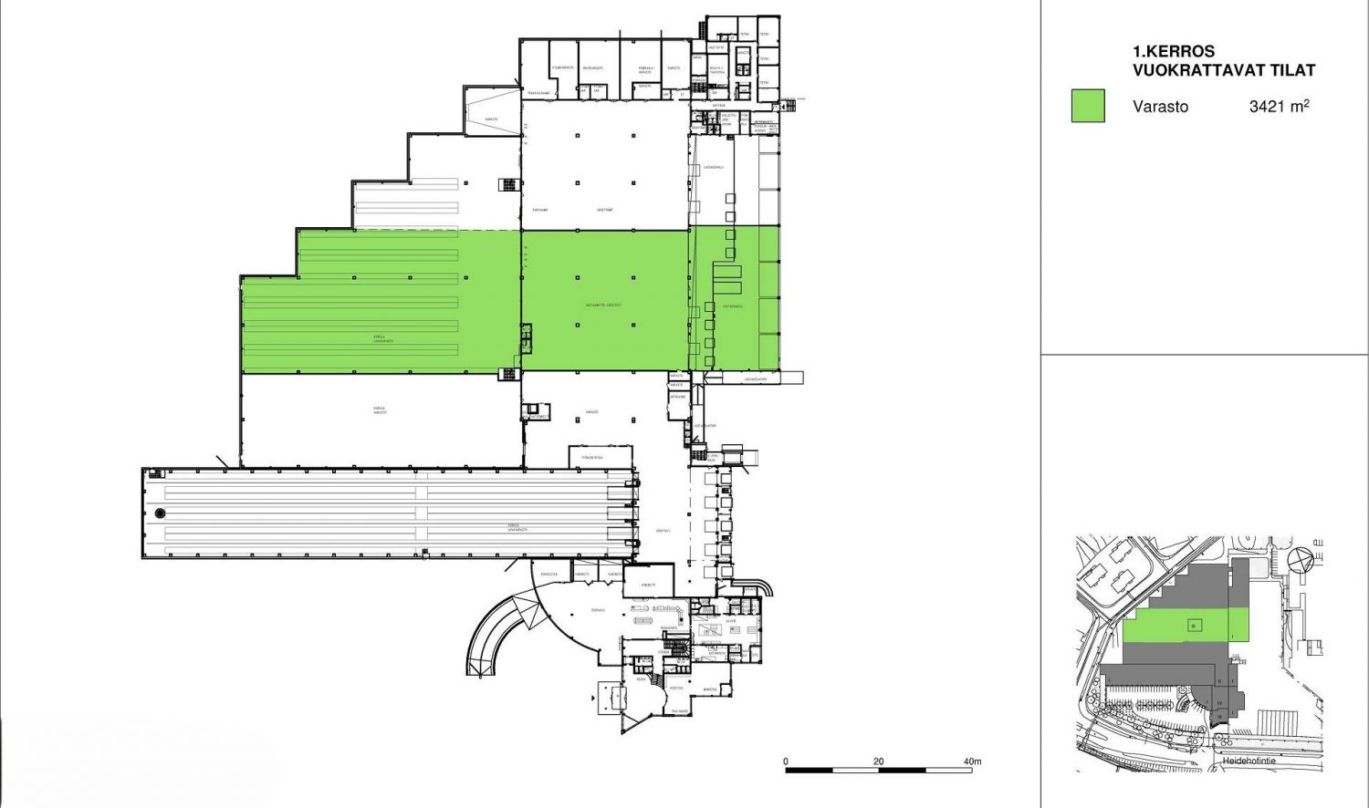 Vuokrataan varasto 3421 m2. 6 kpl lastaussiltoja, monipuoliset lastausmahdollisuudet eri kokoisille ajoneuvoillle. Varaston korkeus osittain 8.5 m, varasto on valmiiksi hyllytetty, pieni toimisto ja sosiaalitilat.