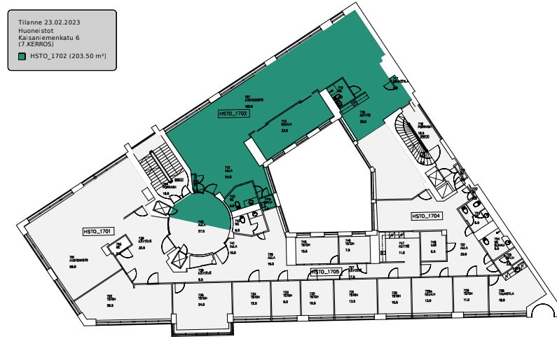 Vapaana 7. kerroksen avotoimistotila, jossa muutama huone. Tilassa ei ole omaa wc:tä, vaan käytössä on yhteiskäyttöiset wc-tilat. Vuokrattavana myös varastotilaa toimistojen yhteyteen. Ainoastaan talon asiakkaiden käyttöön.