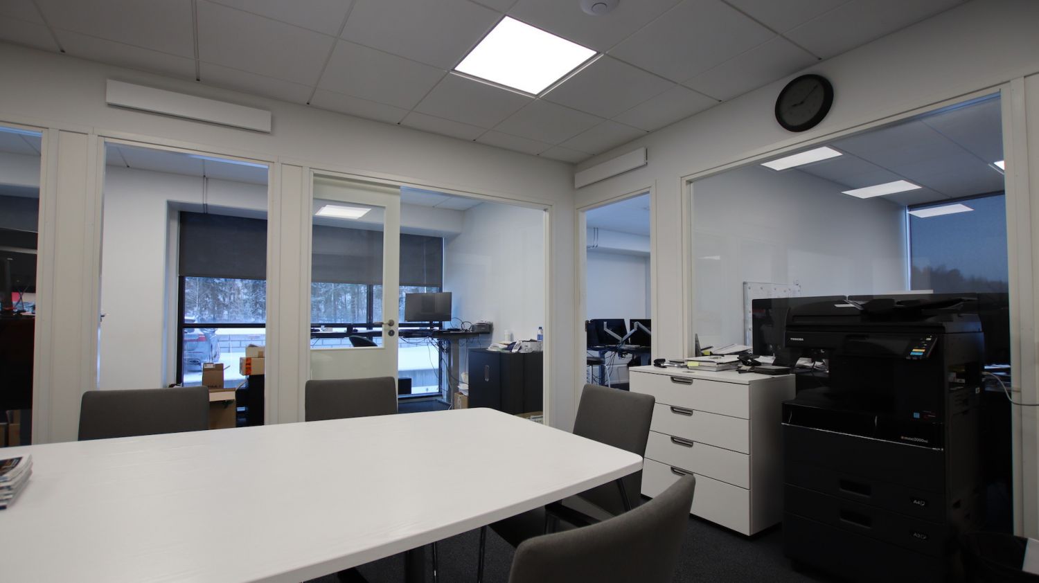Tilakokonaisuus, jossa todella siistit katutason jäähdytettävät 132,5m2 toimistotilat, jossa avotilan lisäksi neljä toimistohuonetta sekä neuvottelutilat ja pieni keittiönurkkaus. Kahdet vessat.
