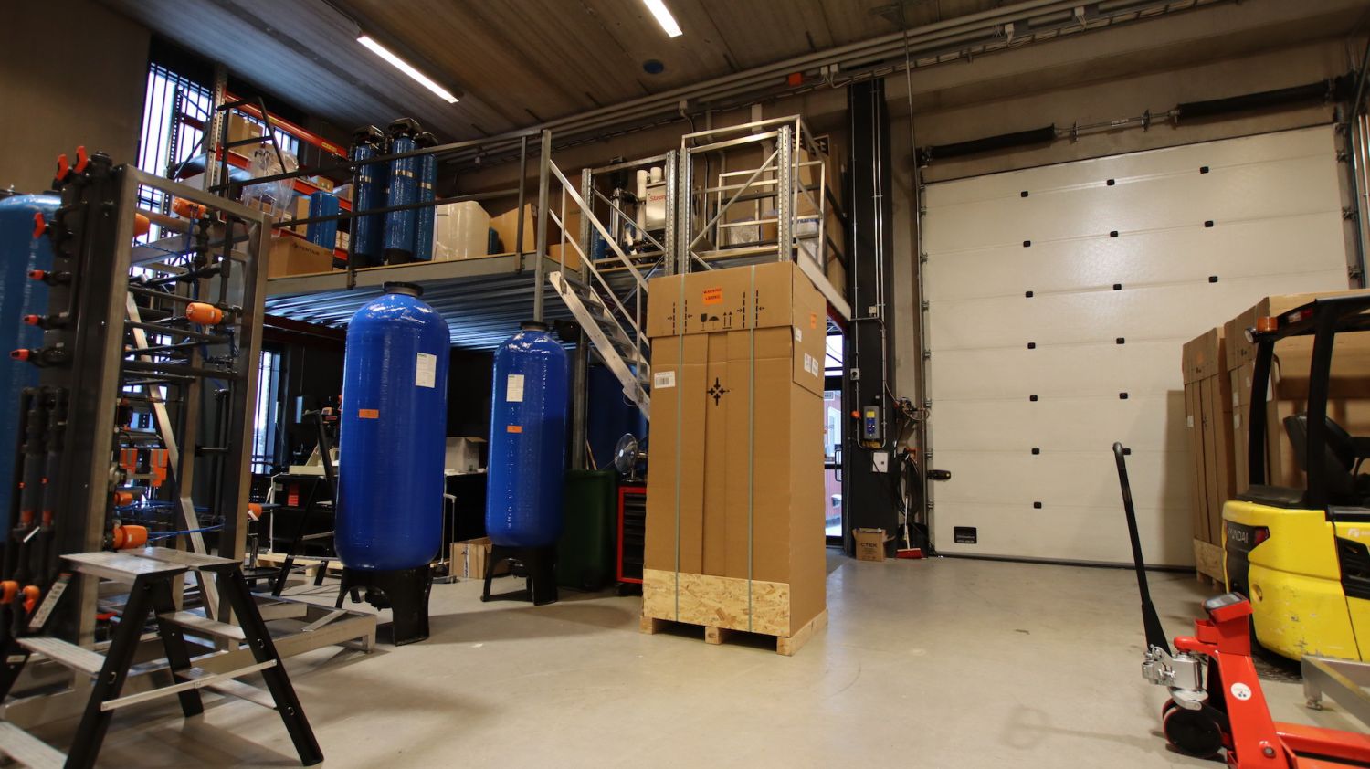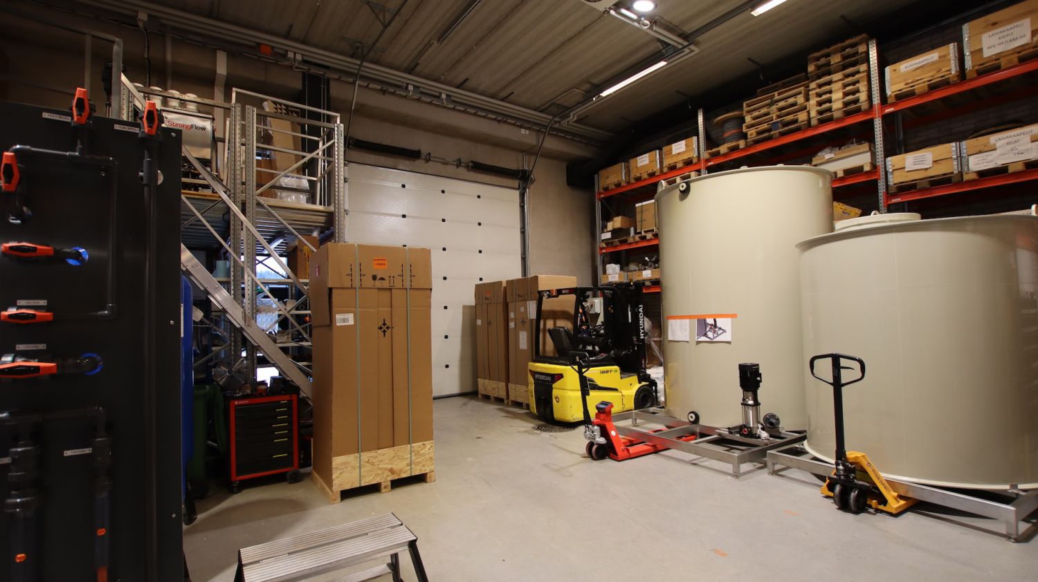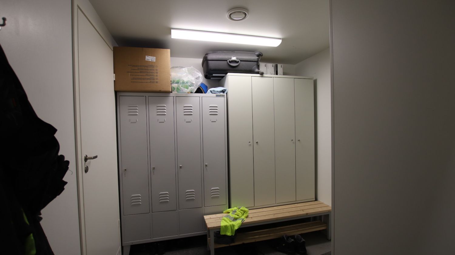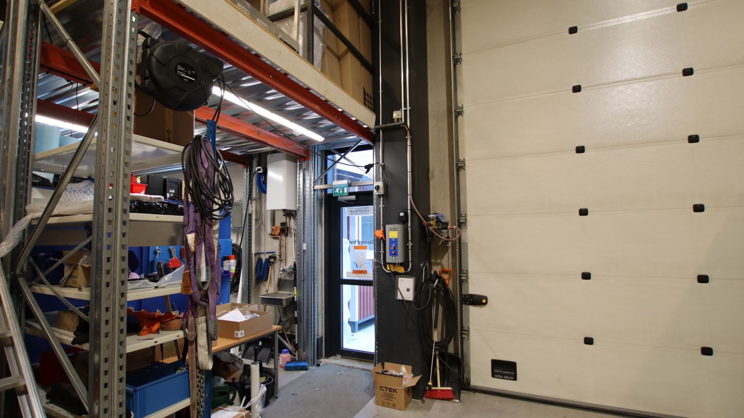 Lisäksi erillinen käyntiovi. Vapaa korkeus 6 metriä. Hallissa vesipiste sekä hiekan-öljynerotus lattiakaivo.