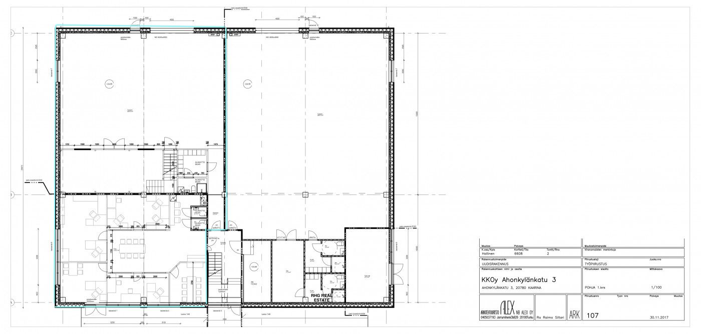 Vuokrattavana hyvätasoiset 362,5 m2 toimisto ja tuotantotilat Kaarinan Krossin alueelta uudehkosta kiinteistöstä osoitteessa Ahokyläntie 3, Kaarina.