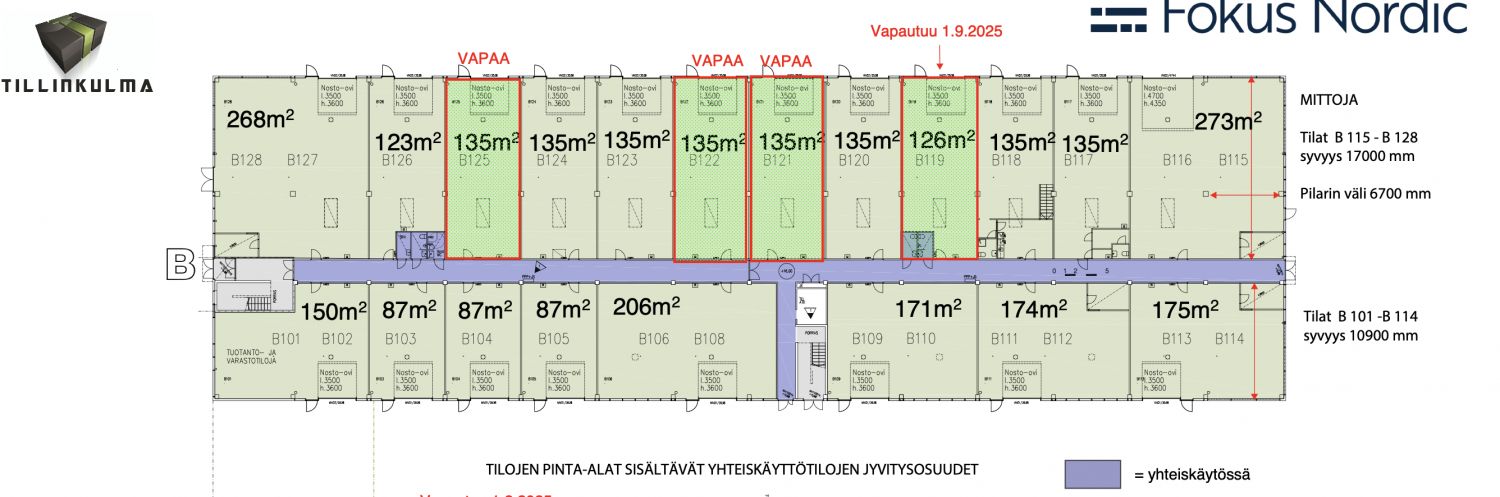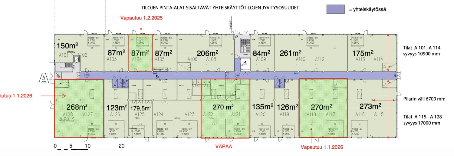 Tiloissa on myös lattiakaivot ja voimavirta.