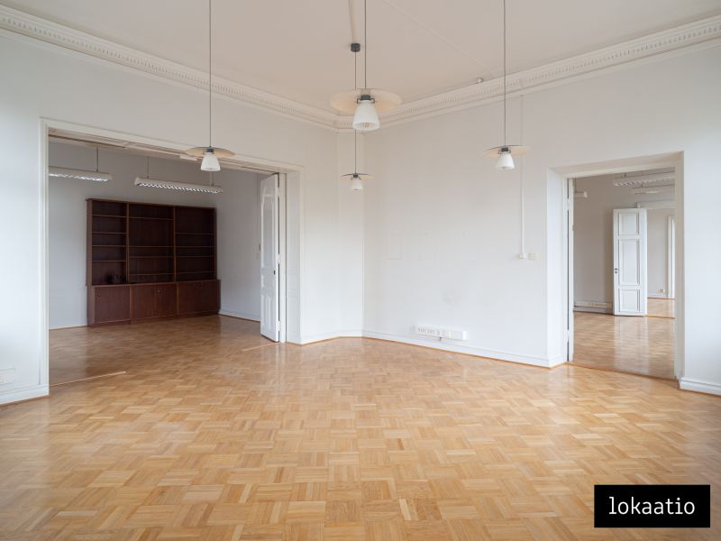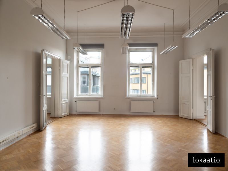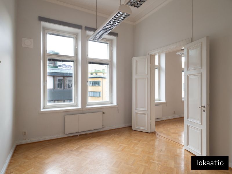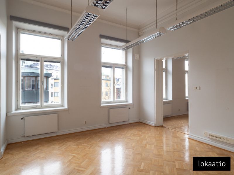 Vuokrataan toimistotilaa edustavasta 1800-luvun arvotalosta Erottajalta. Tämä neljännen kerroksen tila koostuu suurista huoneista, keittiöstä sekä kahdesta wc:stä jossa toisessa on suihku. Kolmeen ilmansuuntaan avautuvien ikkunoiden ja hulppean huonekorkeuden ansiosta tilassa on avara tunnelma.
