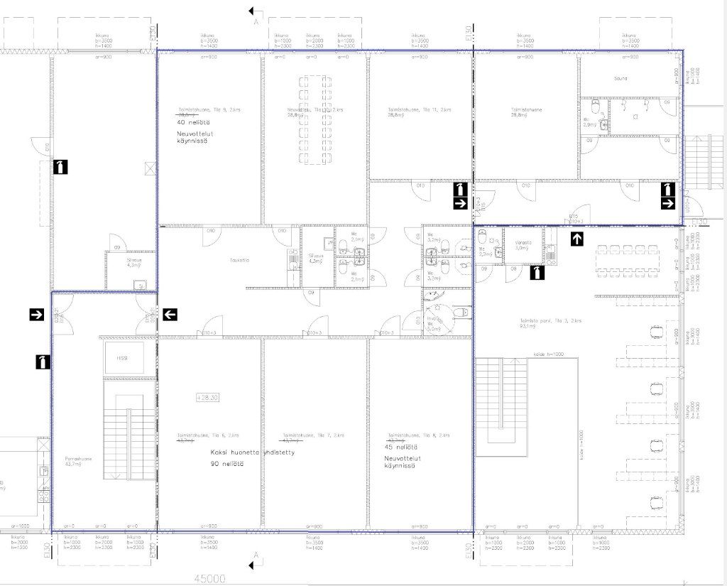 2.kerroksen toimistotilaa, joka kokonaisuus on 333m2, josta jäljellä on yksi 90m2 toimistohuone.