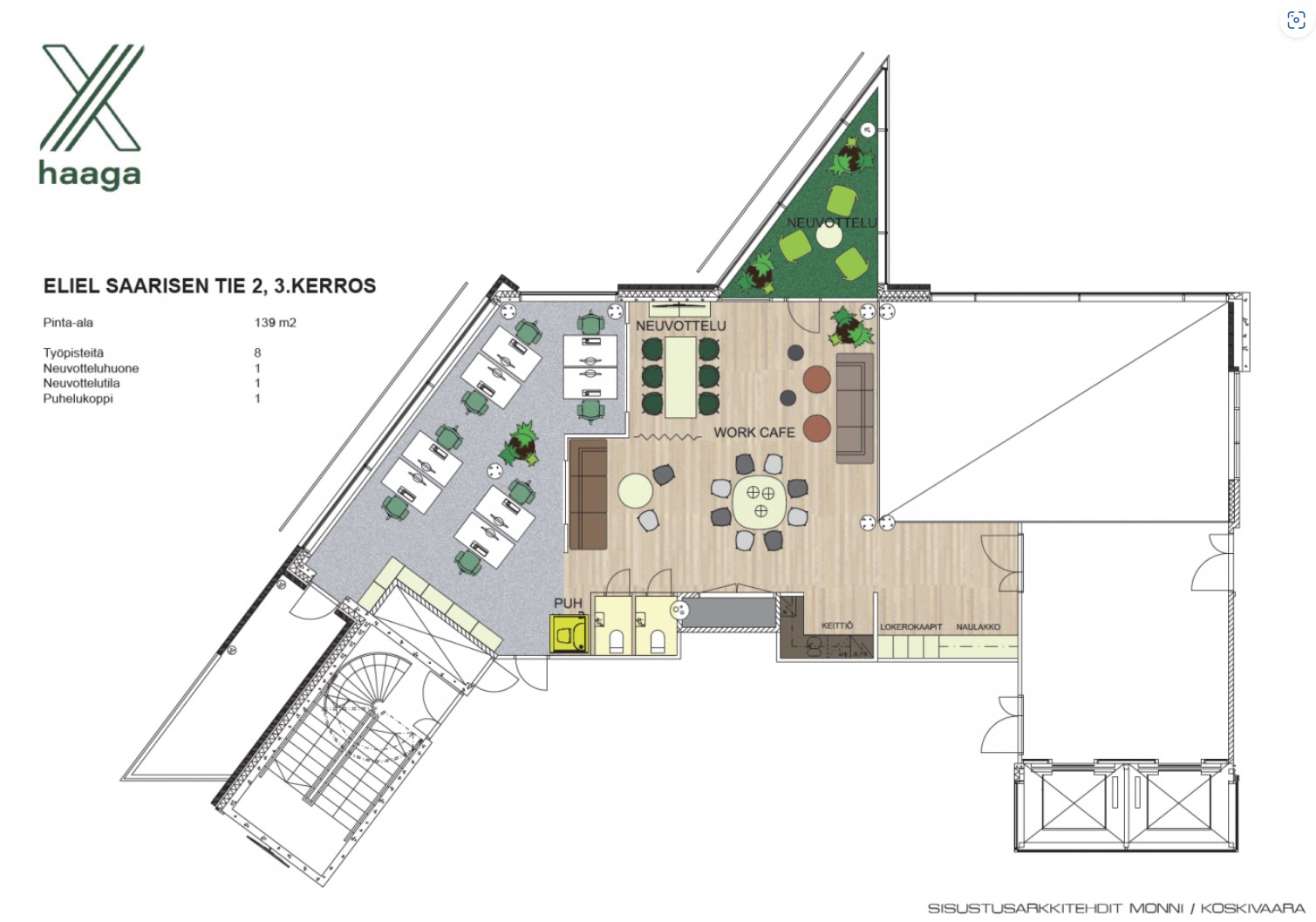 Eliel Saarisen tie 2 eli X Haaga on modernisoitu toimistotalo Pohjois-Haagassa, suoraan Hämeenlinnan väylän varrella ja Keskuspuiston syleilyssä. X Haaga on helposti saavutettavissa mistä tahansa päin pääkaupunkiseutua niin autolla, bussilla kuin junallakin. Helsingin keskustaan taittuu matka noin reilussa kymmenessä minuutissa ja lentoasemalle parissa kymmenessä minuutissa. Raide-Jokerin aloittaessa liikennöinnin 2024, on lähin pikaraitiovaunun pysäkki aivan talon vieressä.