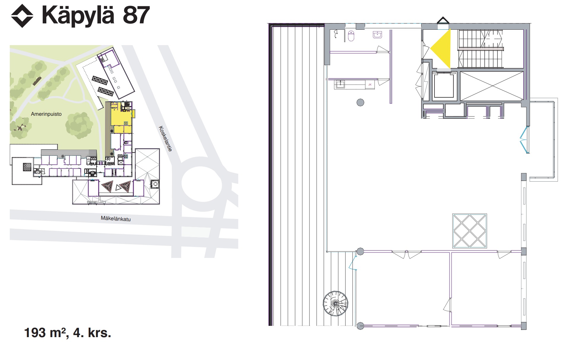 Mäkelänkatu 87, Käpylä87 on ohikulkijoiden keskuudessa tunnettu maamerkki. Tämä kaunista arkkitehtuuria loistava klassikkokiitneisto on alunperin vuonna 1987 Amer Sportsin rakennuttama, ja asuttaa nykyisin monenlaisia yrityksiä. Kiinteistöllä toimii päivittäistavarakauppa, lounasravintola sekä kuntosali, ja tämä tila soveltuu yritykselle, joka haluaa tuottaa haluamansa lisäpalvelut itse omalla tavallaan.