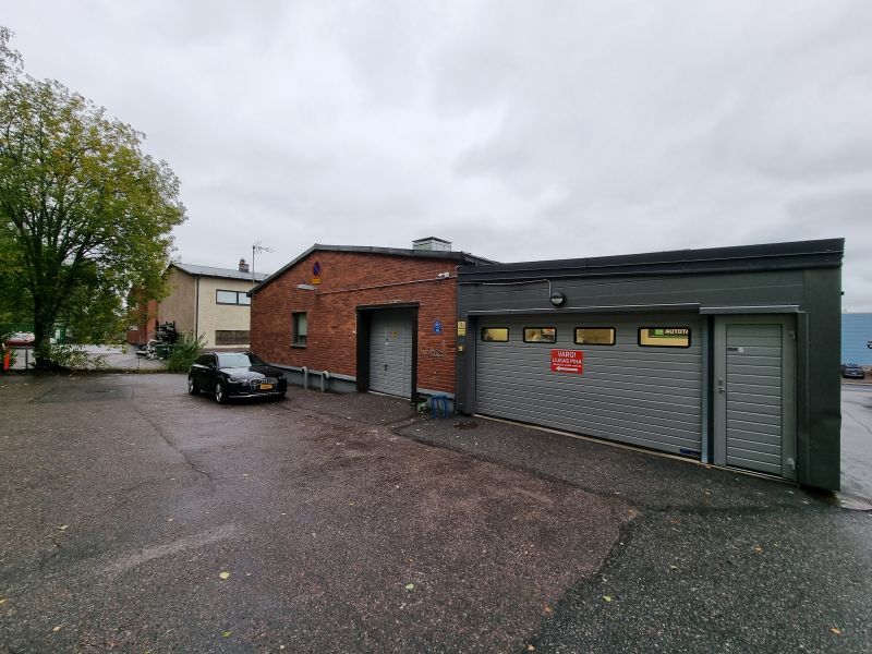 Muuta: Kiinteistö on saneerattu täysin ulkoa ja talotekniikan osalta. Tilat on siistissä kunnossa. Rakennukseeen johtaa kolme sisään ajettavaa ovea. Käyntiovi on katutasossa. 1. kerroksessa öljynerotuskaivollinen autonpesupaikka. Rakennuksen paloluokka on P1.