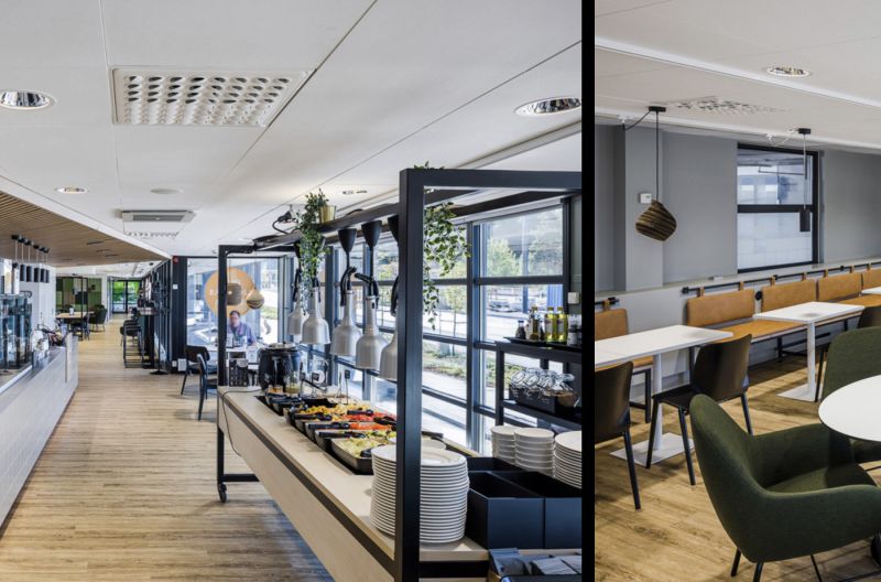 Kellarikerroksessa on varastotiloja ja sosiaalitilat suihkuineen pyöräilijöille. Lämpimässä autohallissa 140 pysäköintipaikkaa. Vieraspaikkoja talon pihalla.