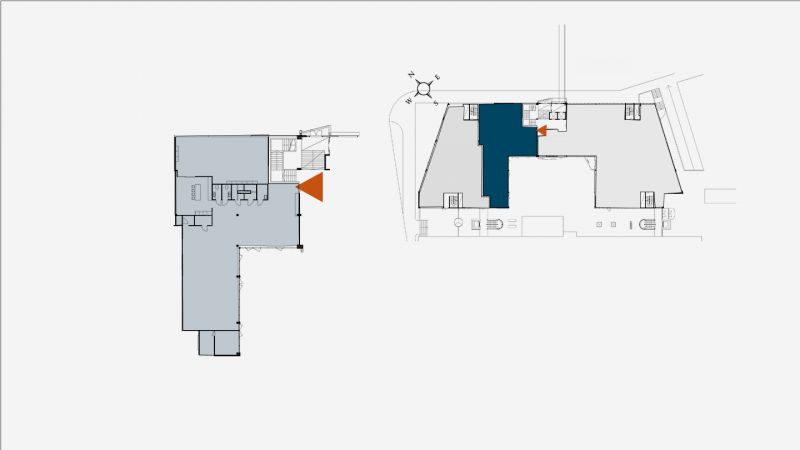 Tila sijaitsee 1. kerroksessa, johon on käynti Joukahaisenkadulta. Katutasosta tilaan johtaa raput, sekä sekä hissi. Samassa kerroksessa toimiin vilkas lounasravintola.