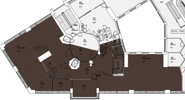 Valoisa 5.krs. moderni toimisto, pääosin avotilaa, muutama toimistohuone, wc-tilat, ja suihku tilassa.