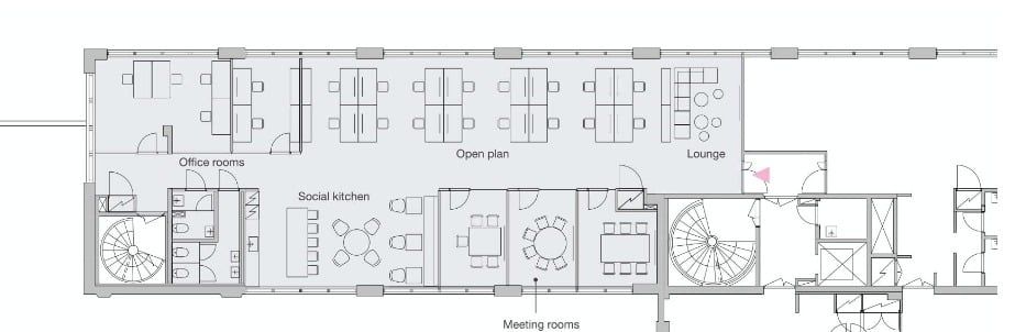 Tämä toimisto tarjoaa siistit tilat työskentelylle. Avokonttoriin mahtuu runsaasti työpisteitä, ja työ- sekä neuvotteluhuoneissa onnistuu keskittynyt työskentely yksin tai tiimin kanssa. Nykypäivän toimistotarpeet huomioiden tässä tilassa on oma taukokeittiö sekä omat wc-tilat.