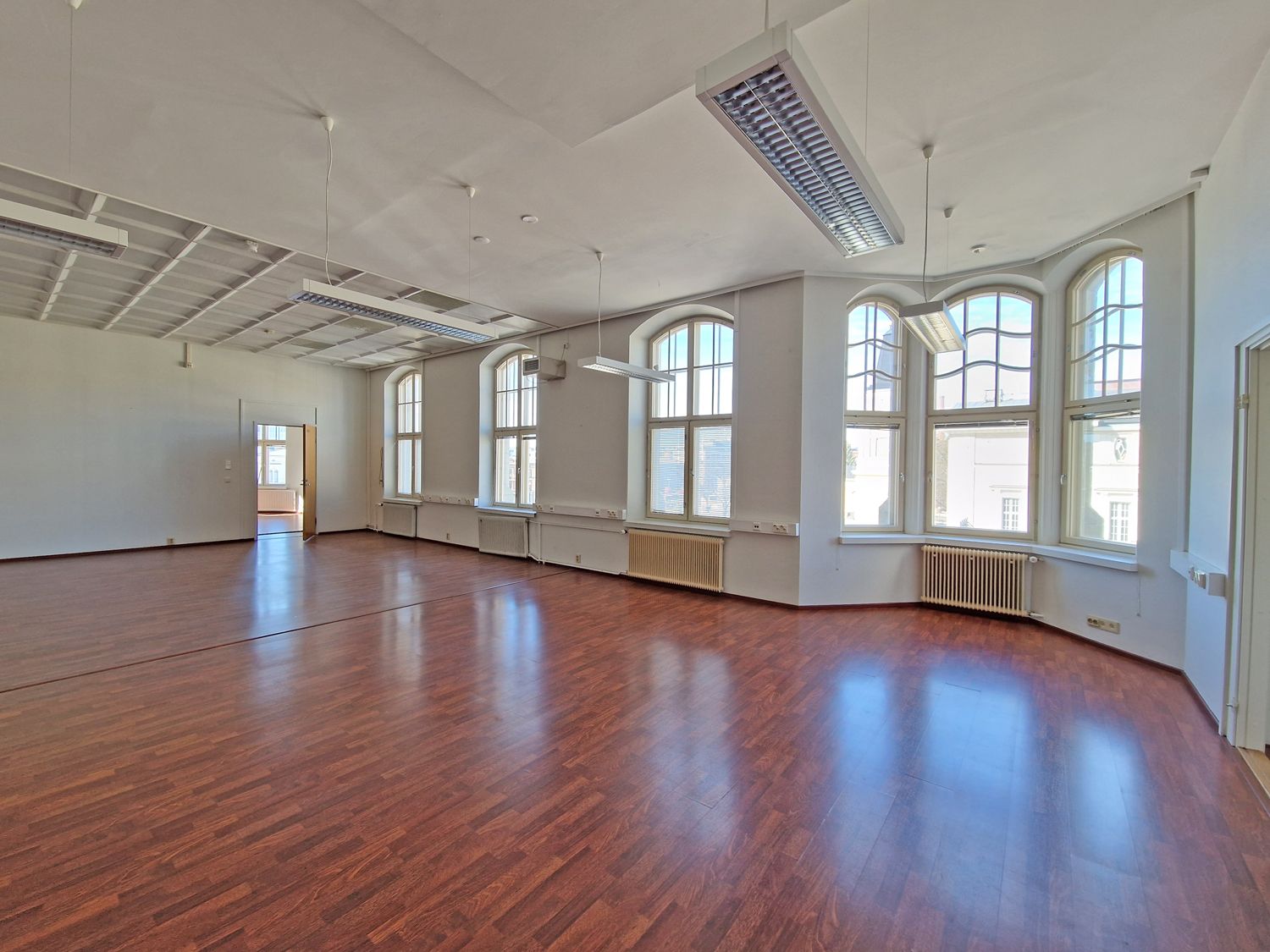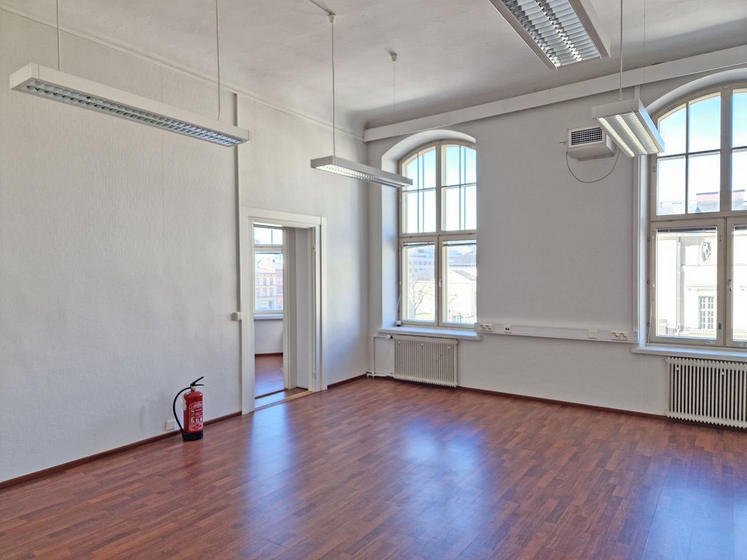Arvotalosta Keskustorin laidalta ylimmän kerroksen toimistotila. Korea huonekorkeus ja näyttävät kaari-ikkunat.