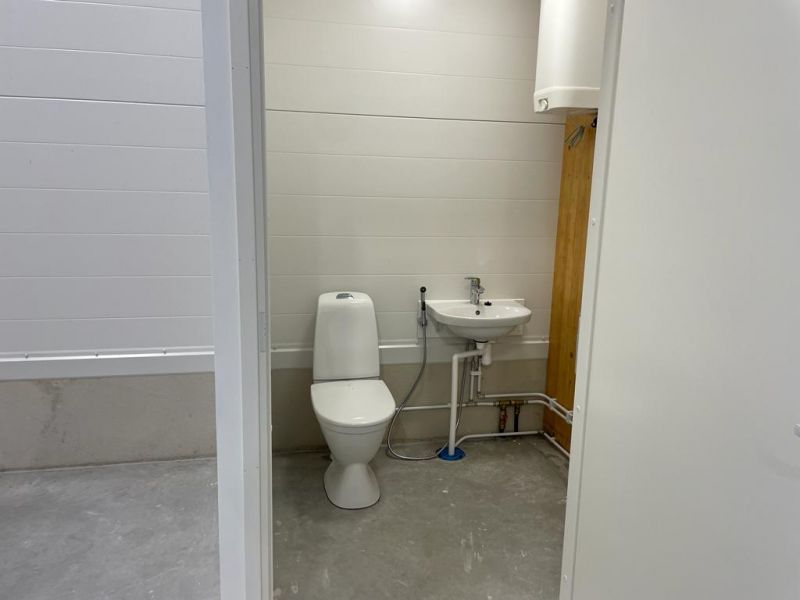 Maalämpö, vesikiertoinen lattialämmitys. WC, hiekan- ja öljynerotuskaivot ja sähköovet kaikissa tiloissa.