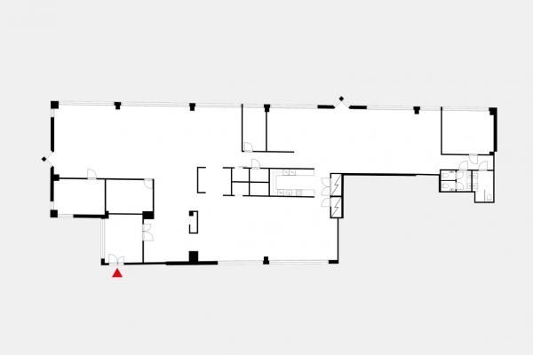 Toisen kerroksen toimistotila. Tilassa runsaasti avotilaa, erinäisiä huoneita, keittiö- ja wc-tilat.