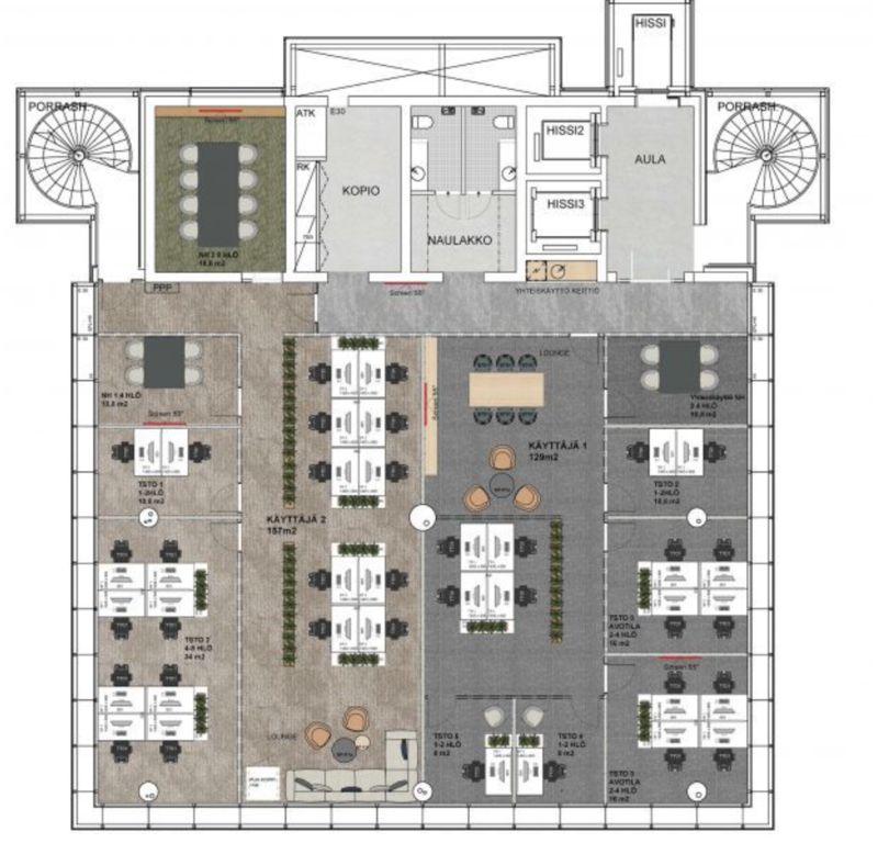Tämä 362m2 toimistotila sijaitsee kiinteistön 15. kerroksessa. Toimistossa on huoneita, avotilaa sekä omat keittiö- ja wc-tilat. Tila on mahdollista jakaa 157m2 ja 129m2 osiin, jolloin tiloihin lisätään jyvitykset yhteiskäyttöisistä sosiaalitiloista. Tilasta on hienot näkymät merelle asti.