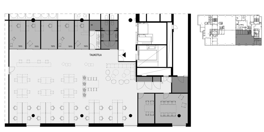 Tämä 350m2 toimistotila sijaitsee kiinteistön 5. kerroksessa. Toimistossa on avotilan lisäksi viisi työhuonetta ja neuvottelutila. Toimisto on heti muuttovalmis.