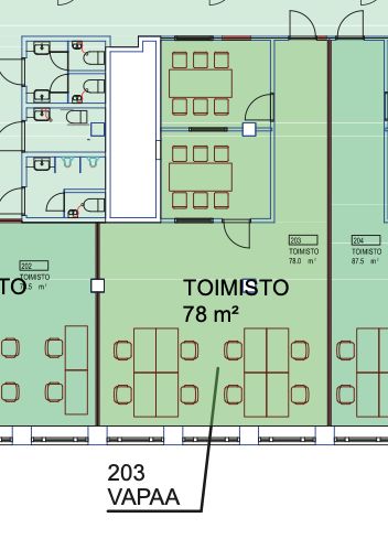 Tämä 78m2 toimistotila sijaitsee kiinteistön 2. kerroksessa. Toimistossa on avotilaa ja kaksi huonetta. Sosiaalitilat ovat vuokralaisten yhteiskäytössä. Kuvat ovat havainnekuvia kiinteistön tiloista.