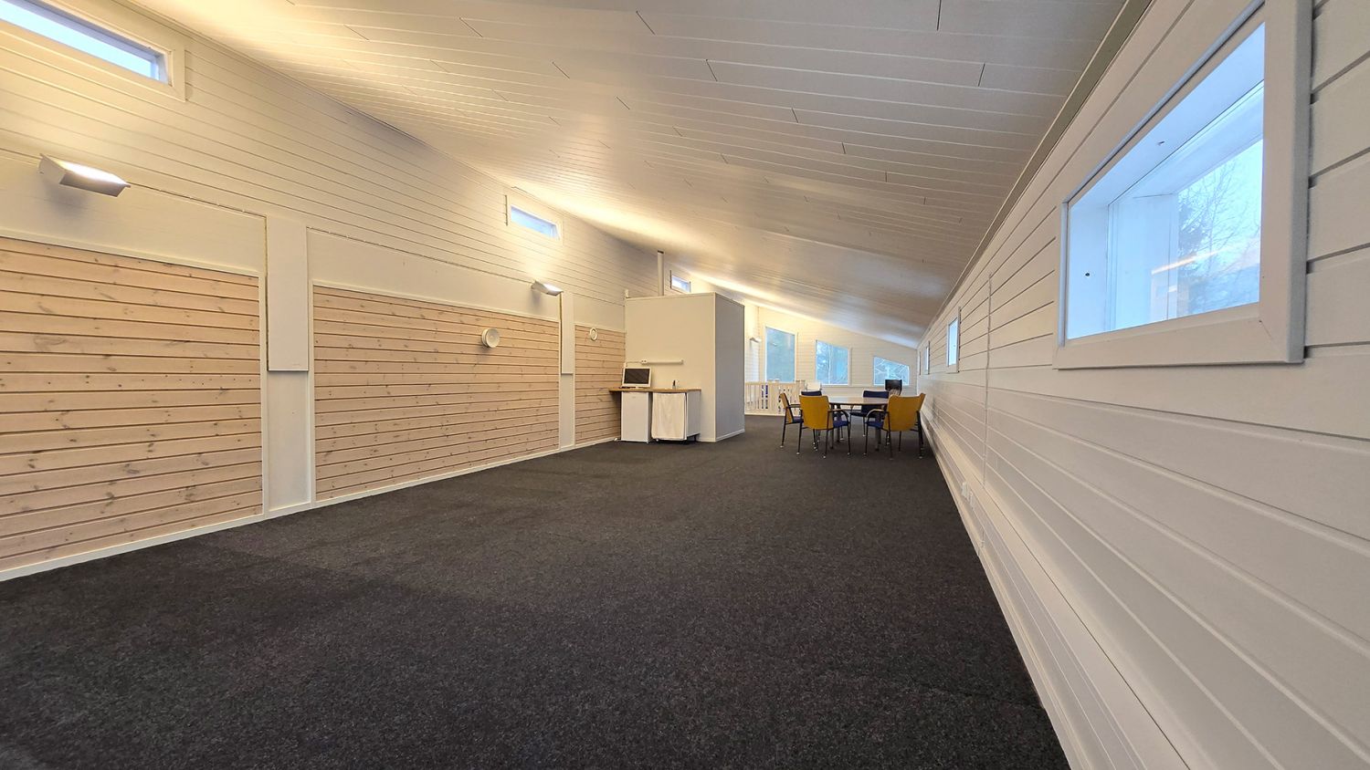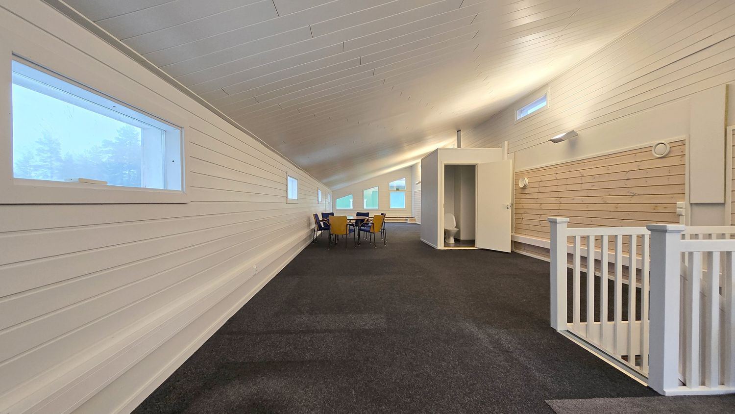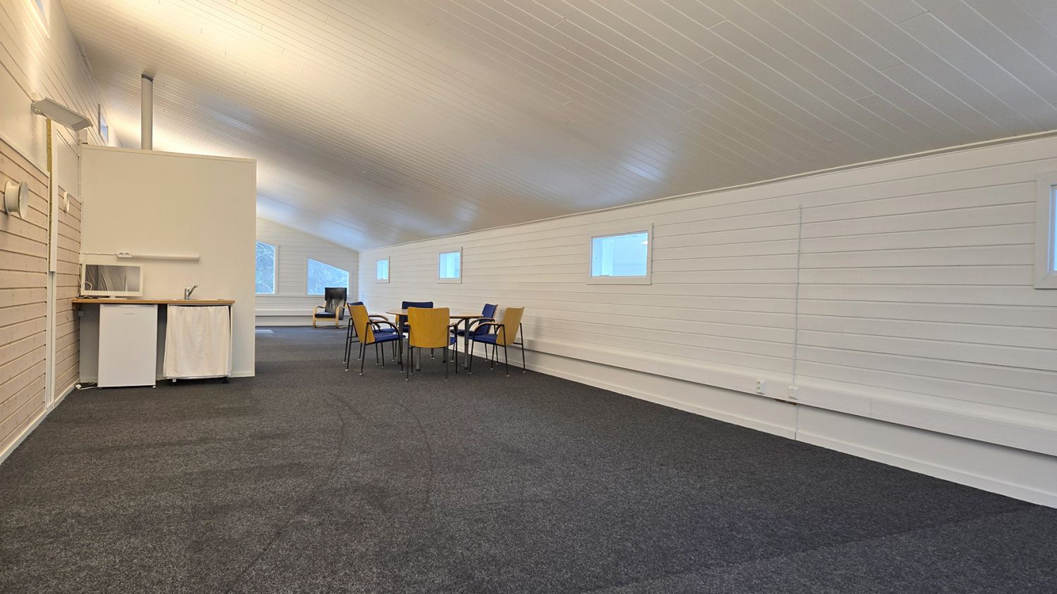 Toisen kerroksen huoneisto on isoa avotilaa, jonka yhteydessä on pieni avokeittiö ja wc. Tilassa on viisto katto ja huoneen päädyissä on hauskat vinot ikkunat, mikä tekee huoneistosta persoonallisen. Tilan molemmilla pitkillä sivuilla on ikkunat, korkeammalla seinustalla pienet yläikkunat, matalammalla seinällä hiukan suuremmat ikkunat.