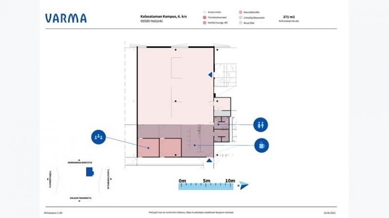 Tämä 371m2 tila sijaitsee kiinteistön 6. kerroksessa. Tila on pääosin avotilaa. Siihen kuuluu myös kaksi neuvotteluhuonetta sekä keittiö ja wc-tilat.