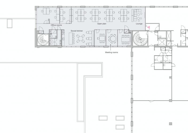 Viidennessä kerroksessa sijaitseva toimistotila, joka koostuu yksittäisistä huoneista, avotilasta ja sosiaalitiloista. Tilaa on mahdollista muunnella vuokralaisen tarpeiden mukaan.