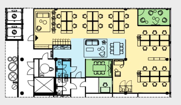 Modernia pääkonttoritason toimistotilaa Pasilan Linkissä.