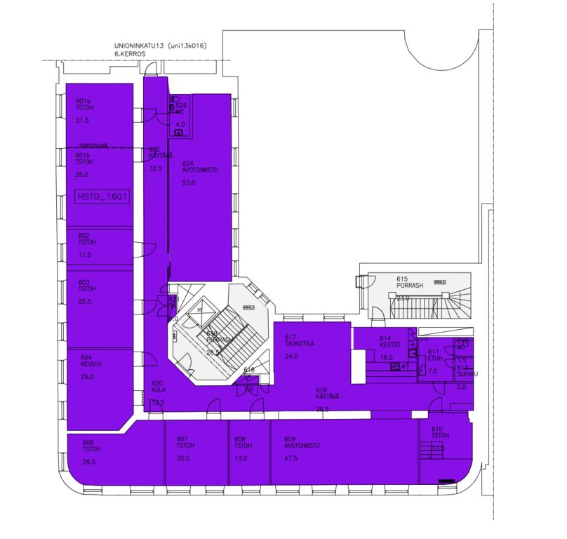 Tämä 210,5 m² toimisto sijaitsee kiinteistön 6. kerroksessa. Toimistossa on huoneita, avotilaa sekä omat keittiö-, wc- ja suihkutilat. Tilasta on upea merinäköala.