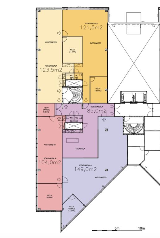 Tämä 147m2 kokoinen toimisto sijaitsee Castor-talon 4. kerroksessa. Valoisa tila koostuu 123,5m2 omasta toimistosta ja neuvotteluhuoneesta, sekä yhteisestä alueesta 23,5m2. Pientoimistoalueella on yhteiskäyttöinen keittiö, astiat sekä kahvin- ja vedenkeitin. Sähköt sekä yhteisten alueiden siivous kuuluvat vuokraan.