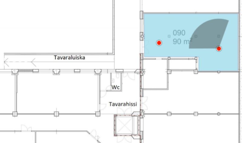 Talossa kaksi tavarahissiä, josta yhteydet jokaiseen kerrokseen ja tilaan.