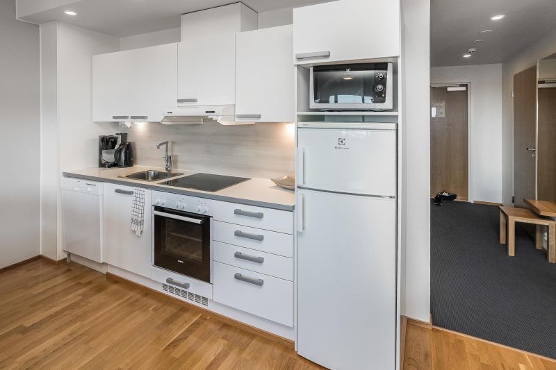 Samassa rakennuksessa sijaitsee ravintola sekä muita palveluja. Aamupala ostettavissa alueen ravintoloista, tarkista saatavuus ennakkoon (ravintolat Rukan Kuksa, Rantasipi Rukahovi ja Colorado).