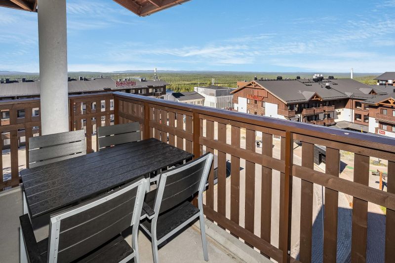 Vuonna 2014 rakennettu tyylikäs kattohuoneisto Rukan kylälle päin.