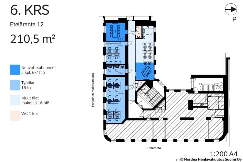 Tämä toimisto tarjoaa tilat työskentelylle erinomaisella sijainnilla. Tässä tilassa on useita huoneita, joissa onnistuu tehokas työskentely joko omassa rauhassa tai tiimin kanssa. Avotila tarjoaa tilaa vauhdikkaammille keskusteluille sekä taukotilalle keittiöineen. Toimistossa on oma wc. Ikkunat tilasta avautuvat Pohjoiselle Makasiinikadulle sekä sisäpihalle. Tila vaatii remontointia ennen käyttöönottoa.
