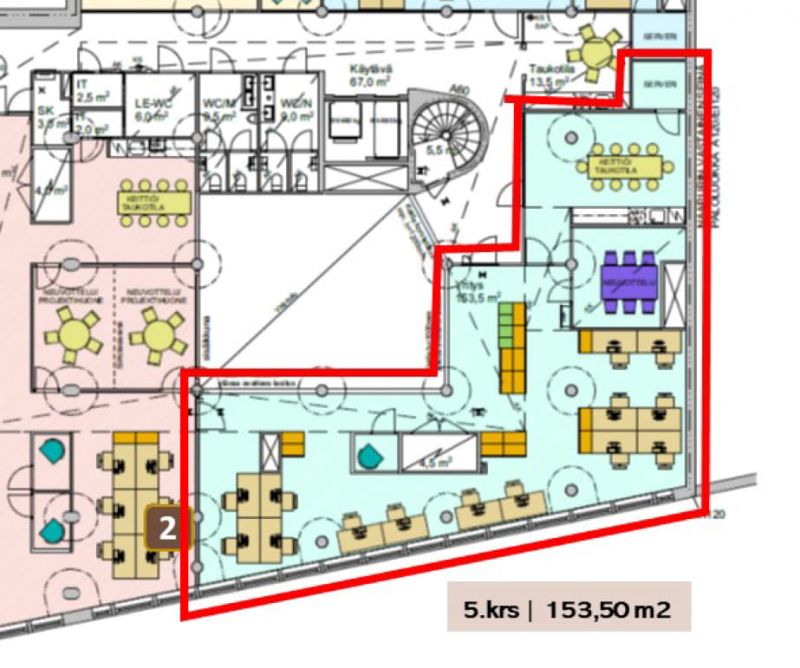 Kallaveden Konttuurin arvokas 1950-luvun kiinteistö on modernisoitu toimistorakennukseksi. Kiinteistö sijaitsee aivan Kallaveden rannalla. Viidennen kerroksen 153,5m2 täysin remontoitu toimitila. Näköalat avautuu ikkunoista Kallavedelle ja ympäristöön. Oma keittiö sekä neuvottelutilat.