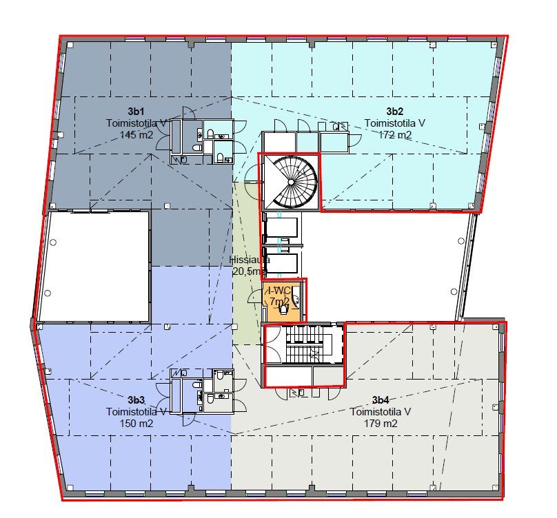 Vuokrataan uudenveroista toimistotilaa Aitio Business Park Verdistä, vuokrattava tila on 3. kerroksen 150m2 toimistotila. Tämä koko kerroksen 666,50m2 tila on jaettavissa 145m2, 172m2, 150m2 ja 179m2 toimistotiloihin.