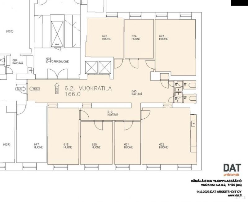 Tämä 166m² toimistotila sijaitsee kiinteistön 6. kerroksessa. Toimisto on huoneellinen, ja siihen kuuluu tilava taukokeittiö ja wc-tilat. Tiloissa on koneellinen ilmanvaihto, huonekohtainen kaukojäähdytys ja kuituyhteys. Toimistoa on mahdollista remontoida.