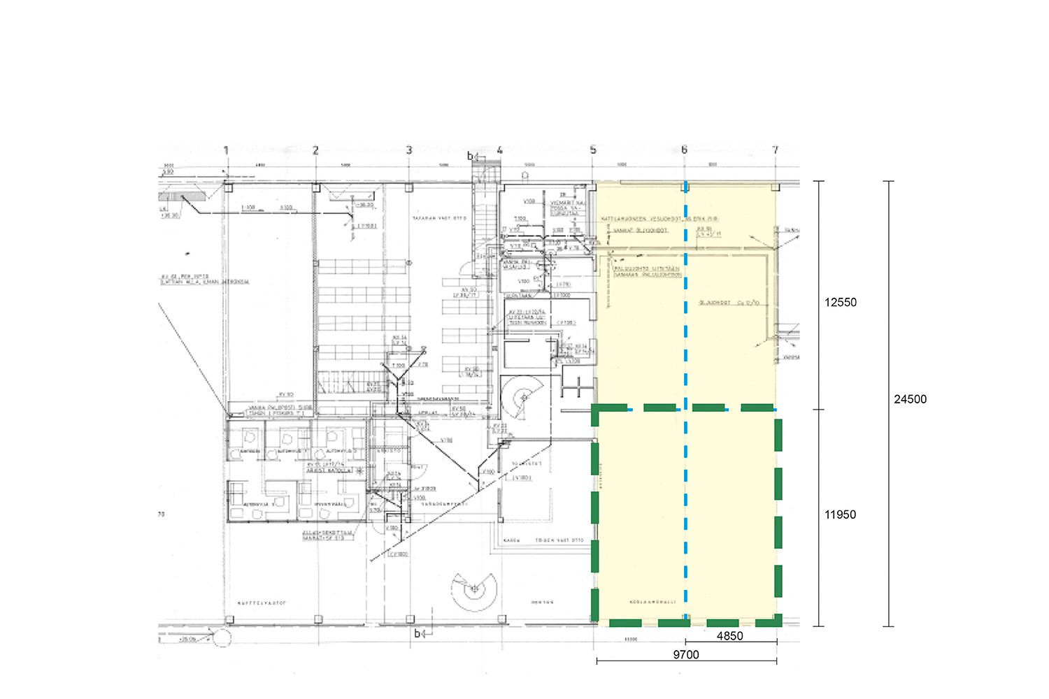 Porvoon Tarmolassa on nyt vuokrattavana henkilöautokorjaamo tai työtila näkyvällä liikepaikalla. Sopii myös varastointiin. Tilan sijainti merkittynä vihreällä katkoviivalla pohjakuvaan ja vuokrattava alue piirretty kuvaan punaisella katkoviivalla.