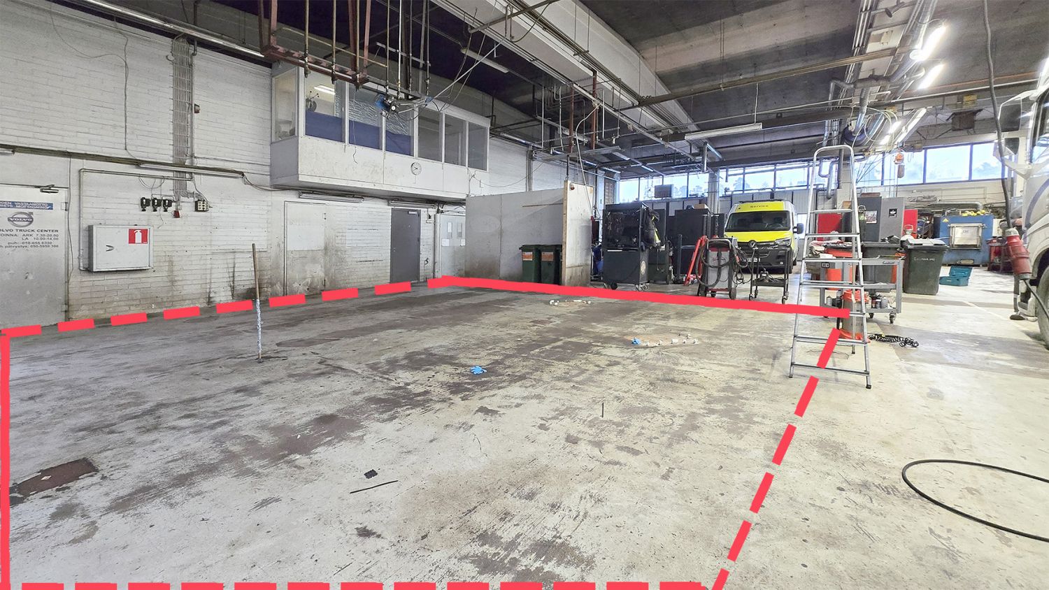 Kuusi metriä korkeassa korjaamohallissa on kaksi paljeovea. Hallitilassa on lisäksi pieni, erillinen käsienpesunurkkaus sekä käyttöoikeus wc-tilaan.