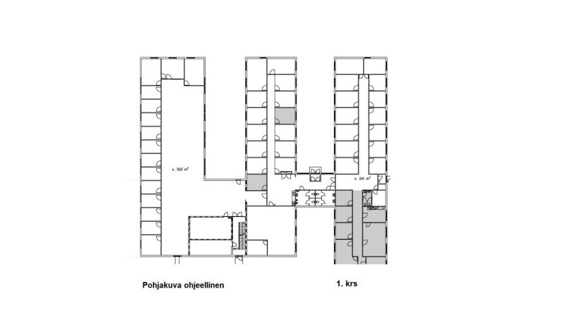 - Ensimmäisen kerroksen n. 593 m2 toimistokokonaisuus