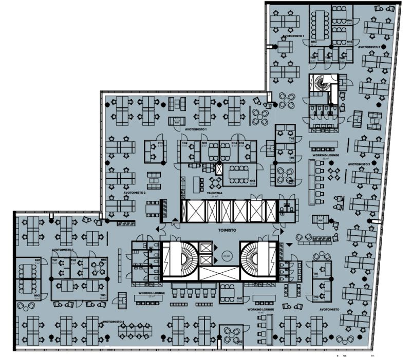 Vuokrattavana 5. kerroksen avaraa toimistotilaa.