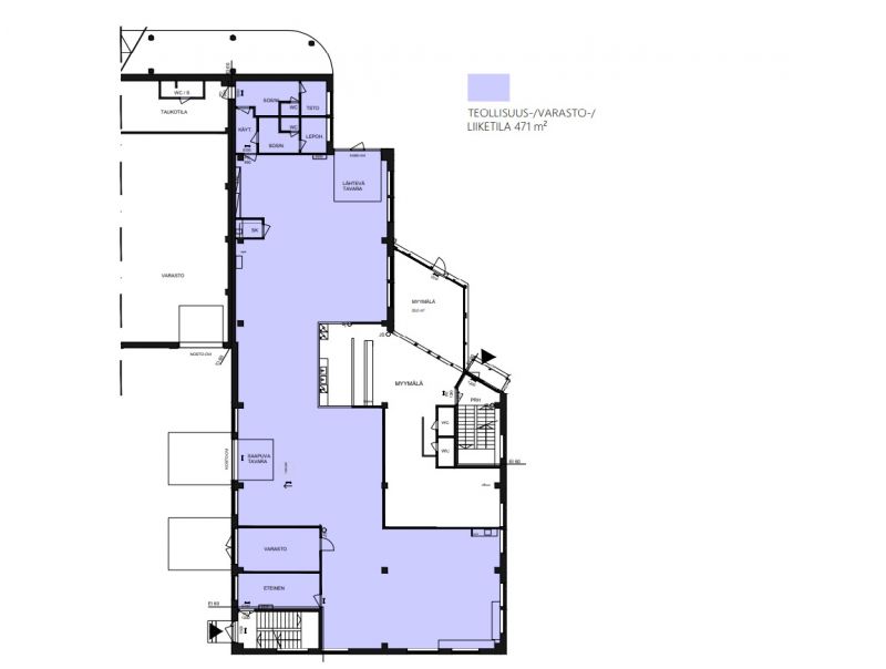 - 148m2 tuotanto-/varasto- ja toimistotila (1. krs).
