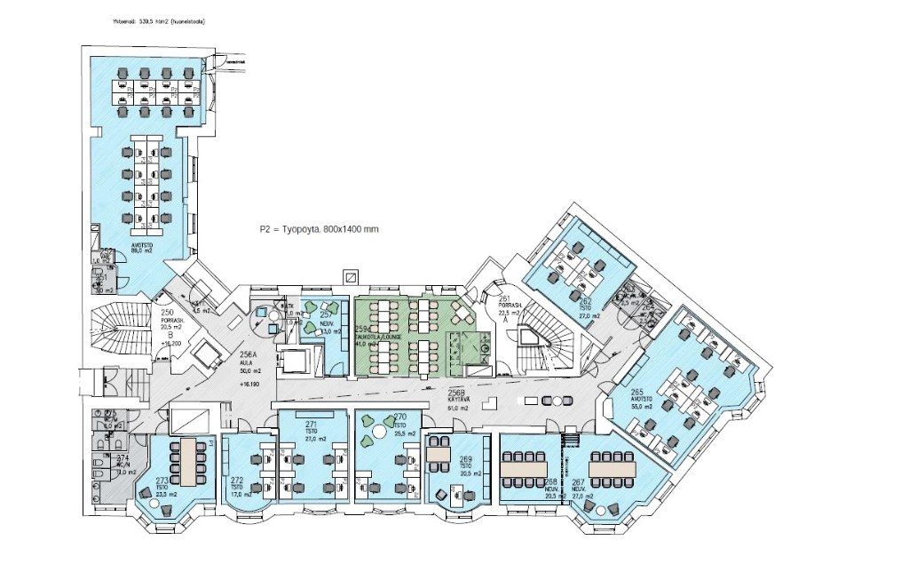 Vuokrataan 539m2 toimistotila tyylikkäästä pääkonttoritasoisesta kiinteistöstä. Jugendrakennuksessa on korkeat huoneet, avotoimistotilaa ja moderni jäähdytys. Kuvat ovat esimerkkikuvia kiinteistön asiakkaille toteutetuista ratkaisuista.