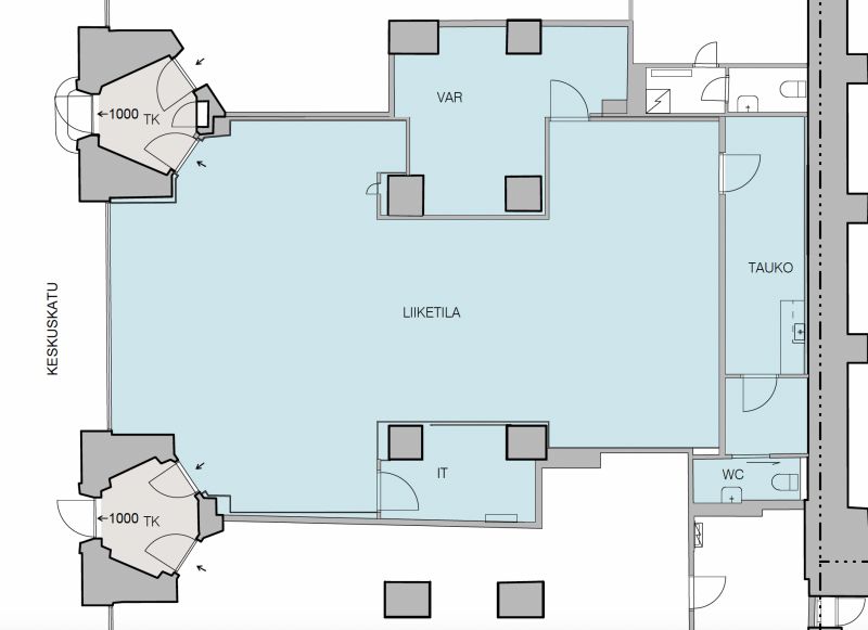 Loistavalla sijainnilla WTC:ssä 174 m² katutason liiketila.