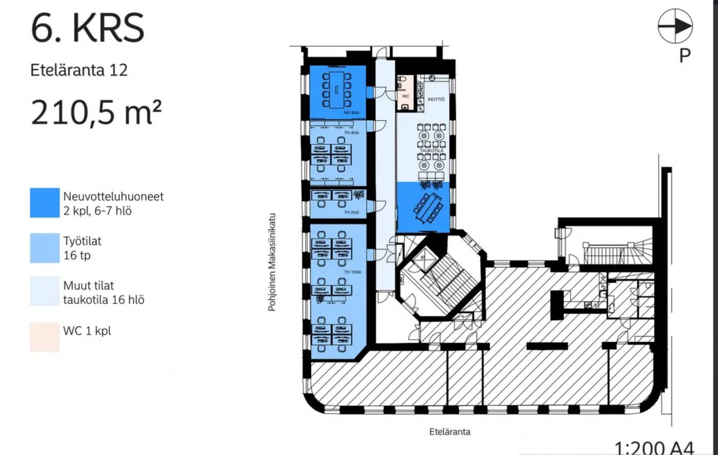 Vuokrataan 210,5 m2 toimistotila Eteläranta 12:sta, meren äärellä Helsingin sydämessä! Tämä kuudennen kerroksen tilava ja monipuolinen toimitila tarjoaa useita huoneita, avotilaa sekä kätevät wc- ja suihkutilat, keittiö mukaan lukien.