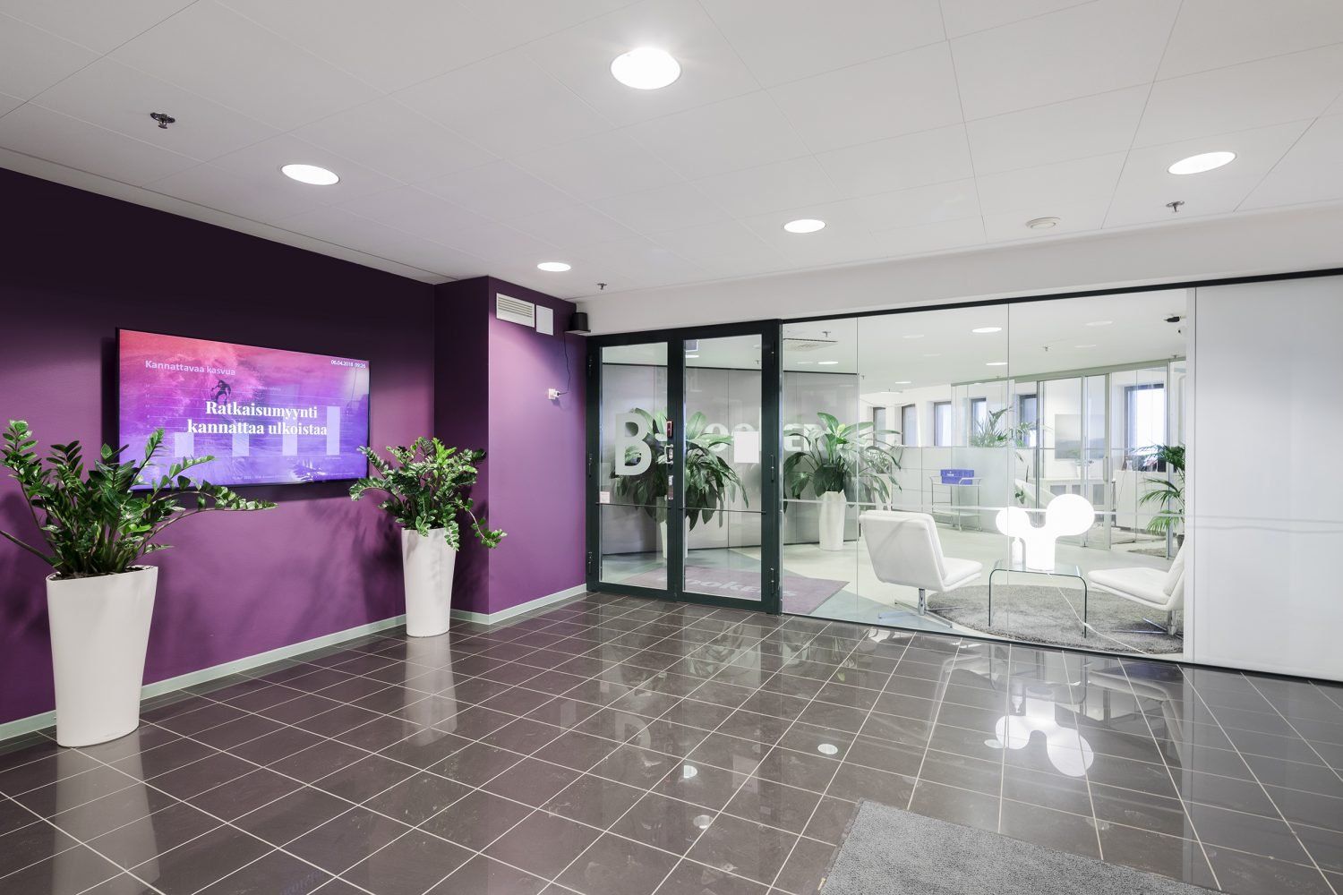 Kalasatamassa 229 m2 toimistoa. Aulaan tulee tavarahissi joten tavaran tuominen helppoa. Toimistokuvat ovat talon muista toimistoista mutta tästäkin toimistosta tehtävissä vastaavanlainen.