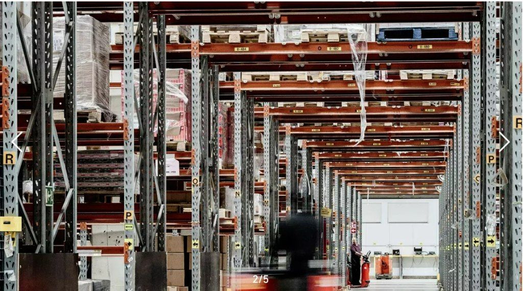 Vuokrattavana logistiikkakeskuksesta valmiiksi hyllytettyä varastotilaa Keravalta.